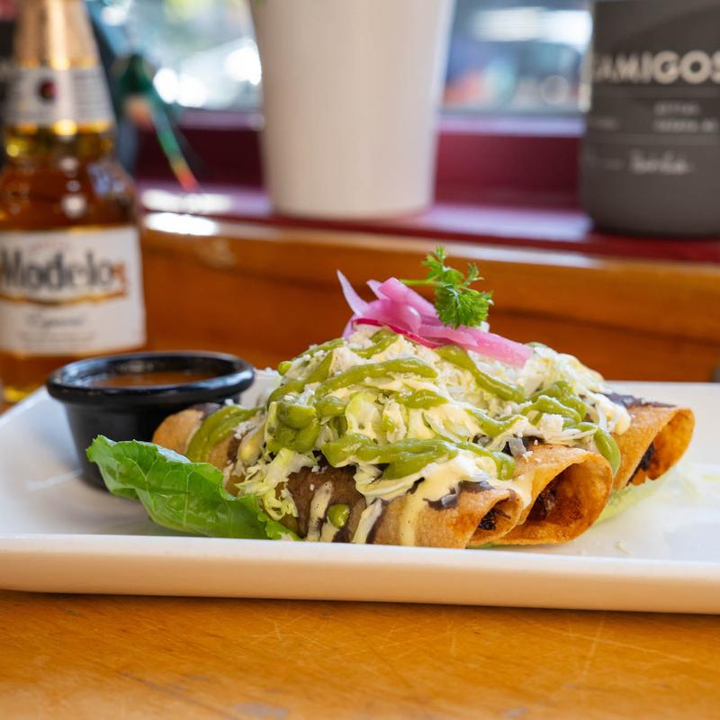 Come with rice, beans, queso fresco, lettuce, pico de gallo & pepper cream sauce.